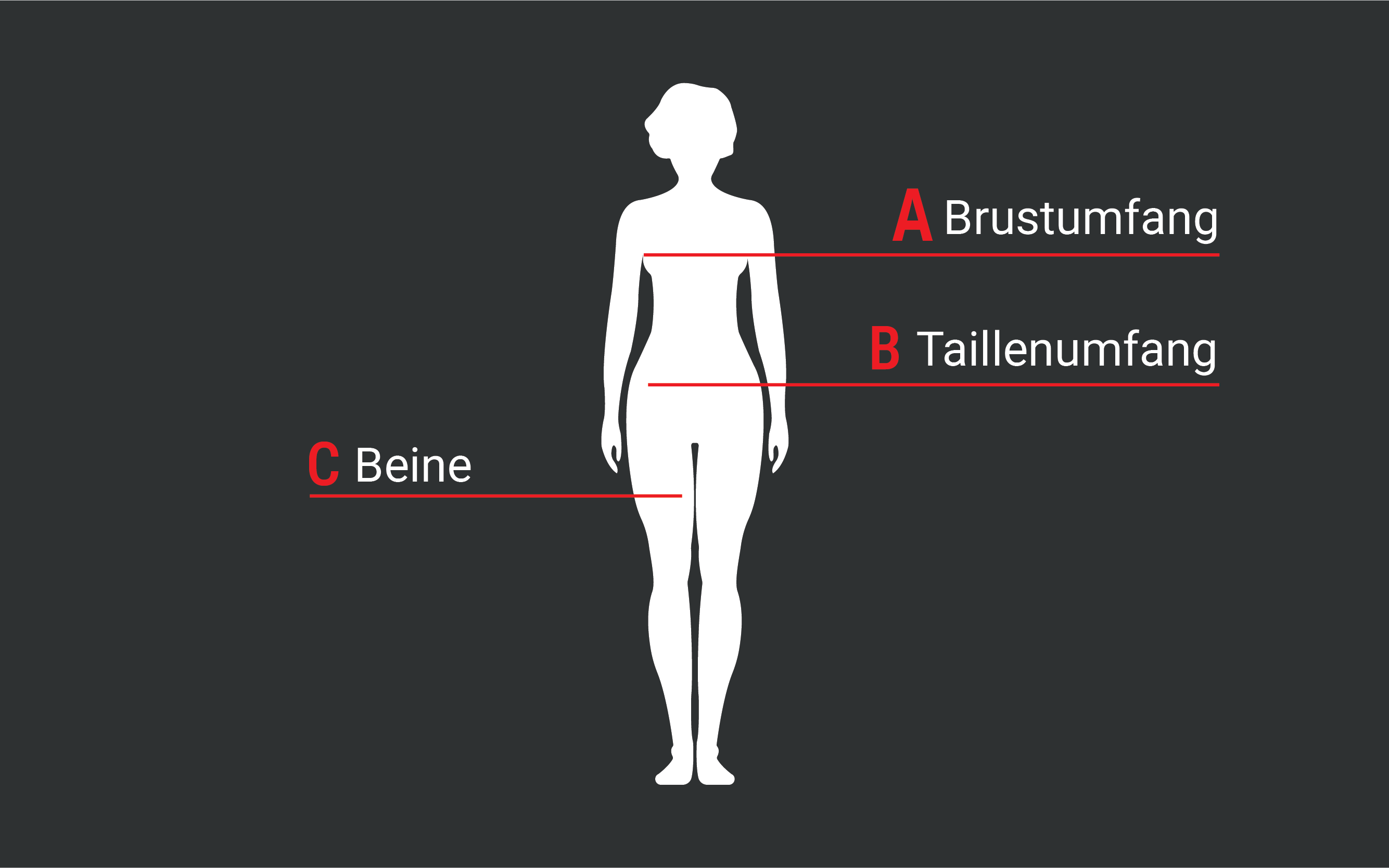 A - Brust: Miss den Umfang an der breitesten Stelle deiner Brust und halte das Maßband waagerecht.