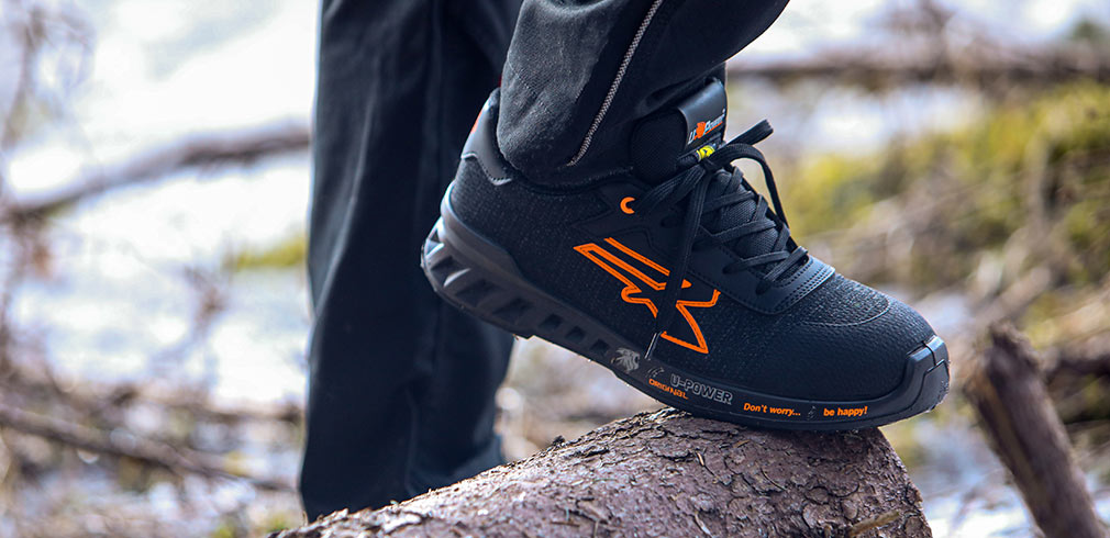 Die Leichtheit des Schuhs wird durch die Verwendung der innovativen PU-Sohle der neuen Generation, dem Save & Flex Air Durchtrittschutz und der anatomischen und leichten U-Power Original Einlegesohle garantiert.