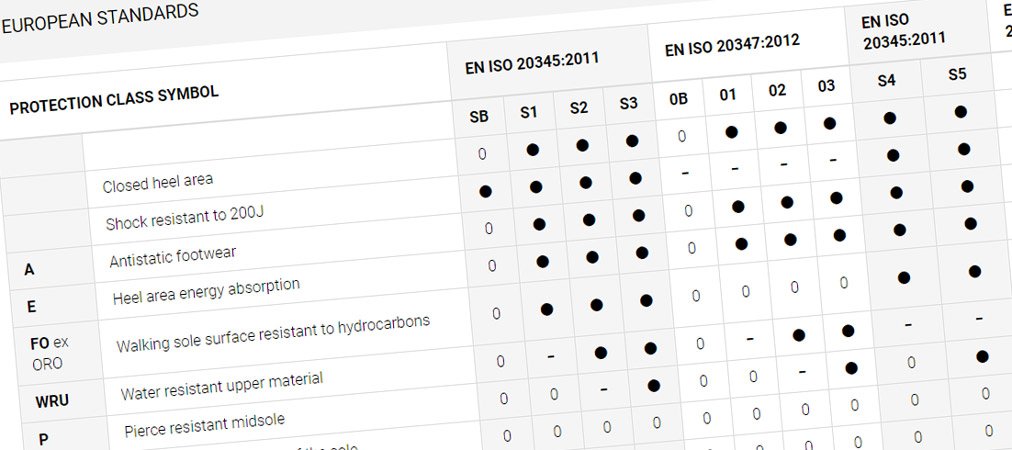 Learn more about the European standards for safety footwear HERE.