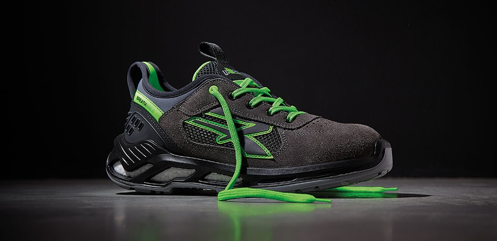 La ligne de chaussures de travail Red 360 est composée de 30 modèles, dont 6 basses en classe de protection S1P SRC ESD avec un insert en Nylon et un cuir suédé, comme NEGAN ou RYDER et 1 modèle– parfait pour l’été ! - avec une tige en Airnet ultra-respirant et un cuir suédé, SPECTER.