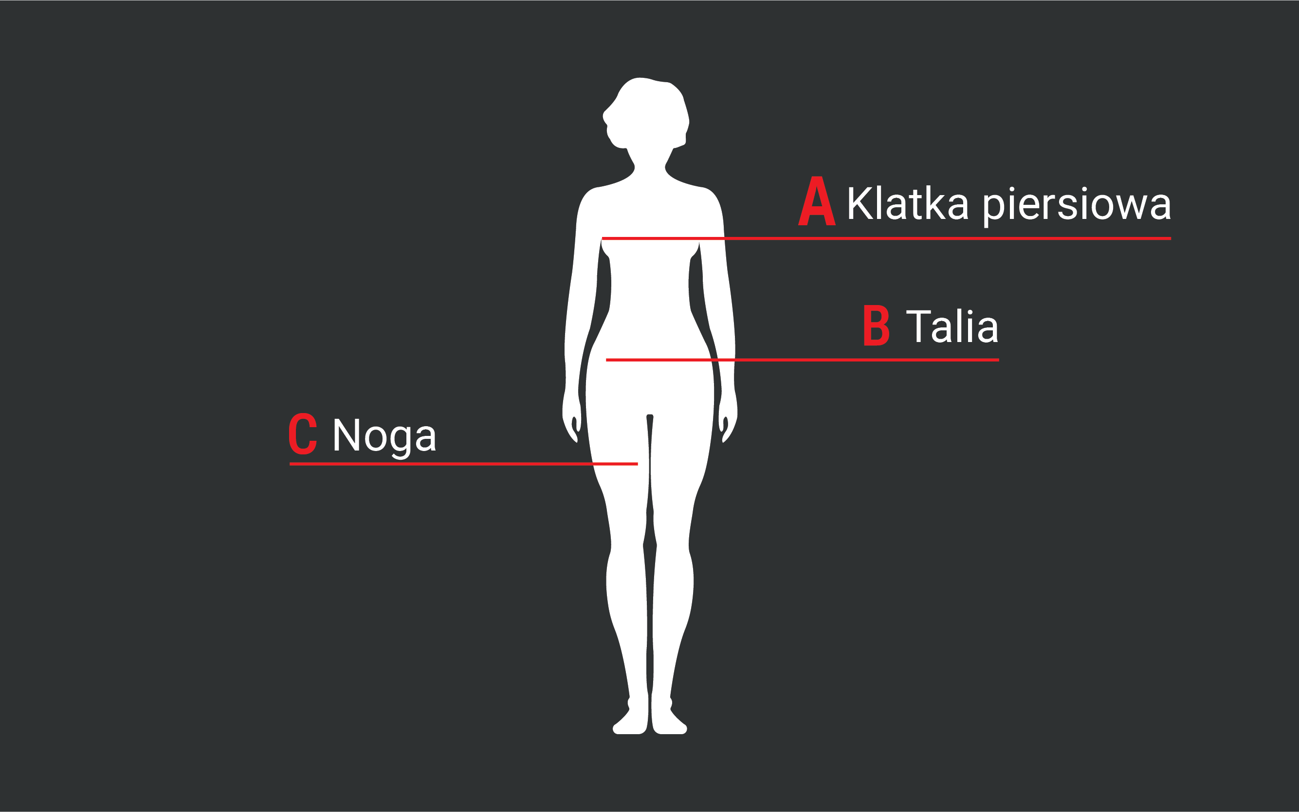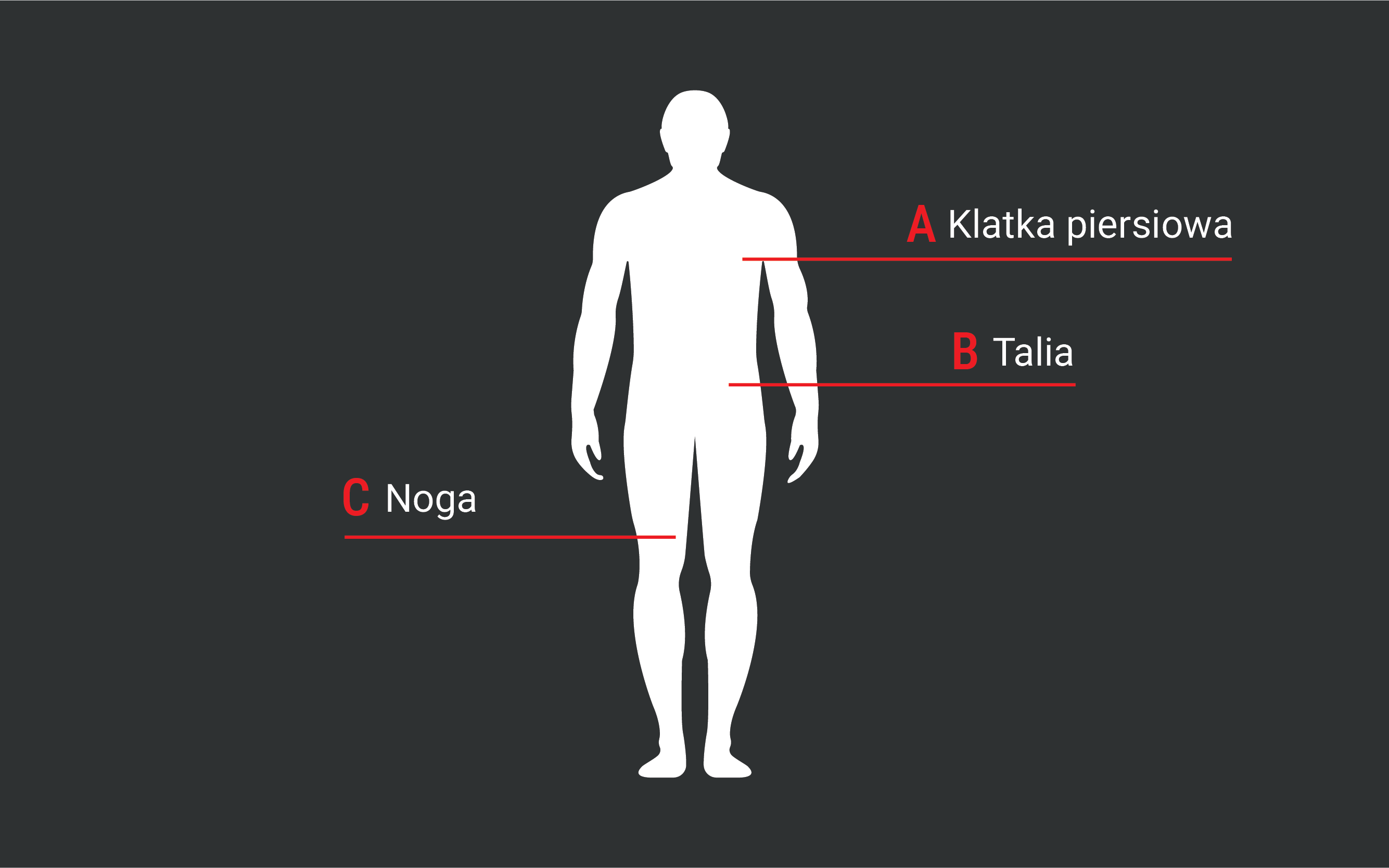 A - Klatka piersiowa: zmierz obwód w najszerszym miejscu klatki piersiowej, trzymając miarkę poziomo.